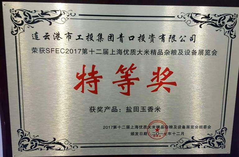 日前,青口投資公司“鹽田玉”大米在2017第十二屆上海優(yōu)質大米及精品雜糧展覽會上榮獲特等獎,這是繼“江蘇好大米”稱號之后的又一重大殊榮。