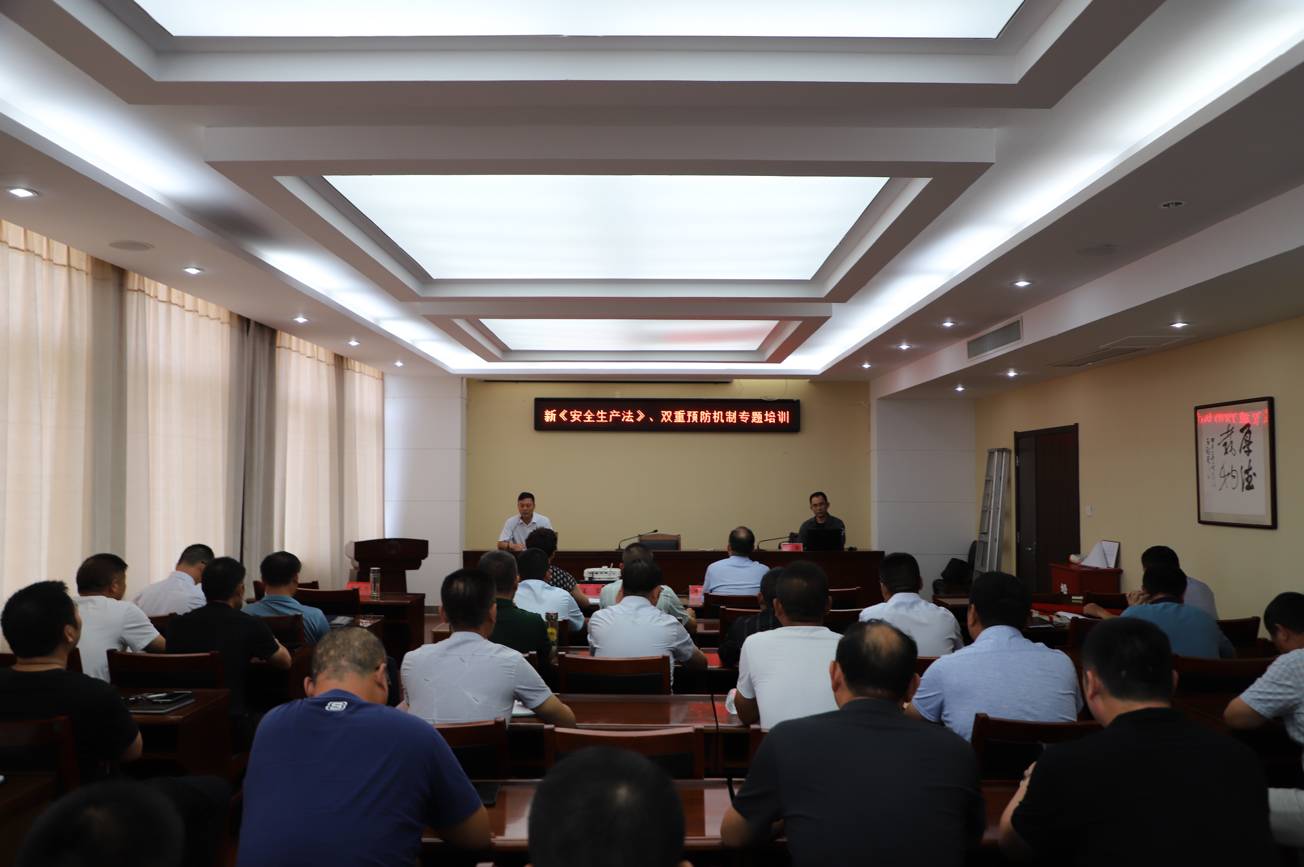 為了努力提高管理人員的安全意識(shí),增強(qiáng)安全生產(chǎn)的責(zé)任感,9月23日特邀請(qǐng)連云港師范學(xué)校的教授來我公司進(jìn)行新《安全生產(chǎn)法》、雙重預(yù)防機(jī)制專題培訓(xùn),公司領(lǐng)導(dǎo)班子成員、各部門負(fù)責(zé)人、各單位負(fù)責(zé)人、分管安全管理人員參加培訓(xùn)。