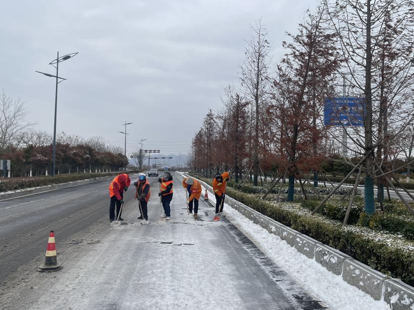 天氣雖冷,但絲毫沒有影響大家的干勁,經(jīng)過1個多小時的連續(xù)奮戰(zhàn),完成了融雪劑拋撒和清理工作,確保了道路安全暢通。